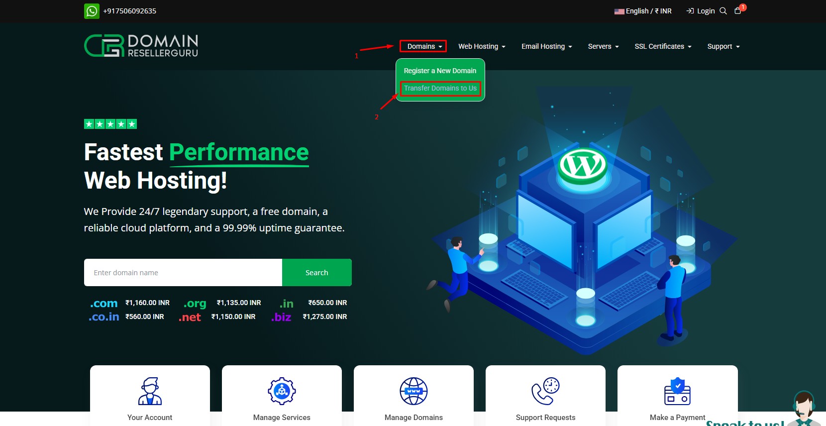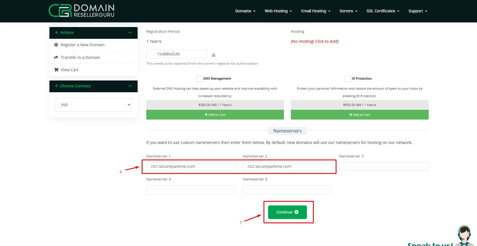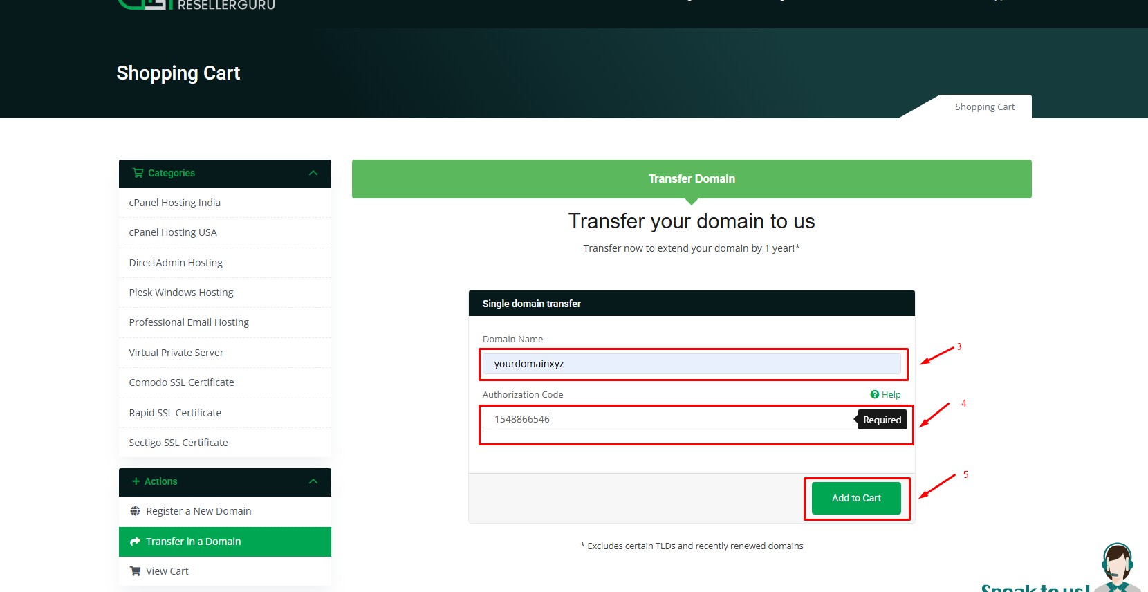 Enter your domain name & EPP code/ secret code/ Authorization Code then click on Transfer.